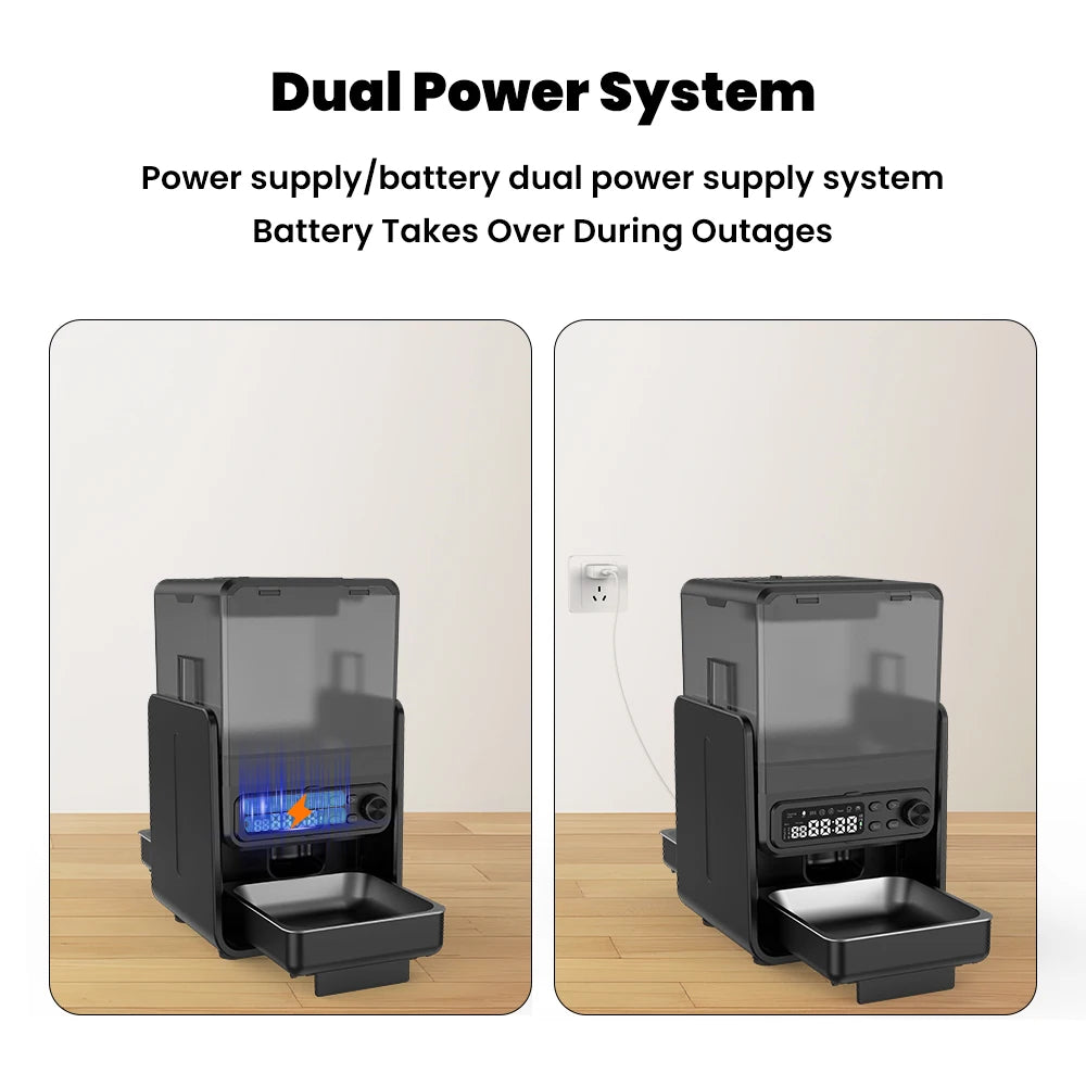 Functions even during power outages. The battery backup ensures your pets never miss a scheduled meal.